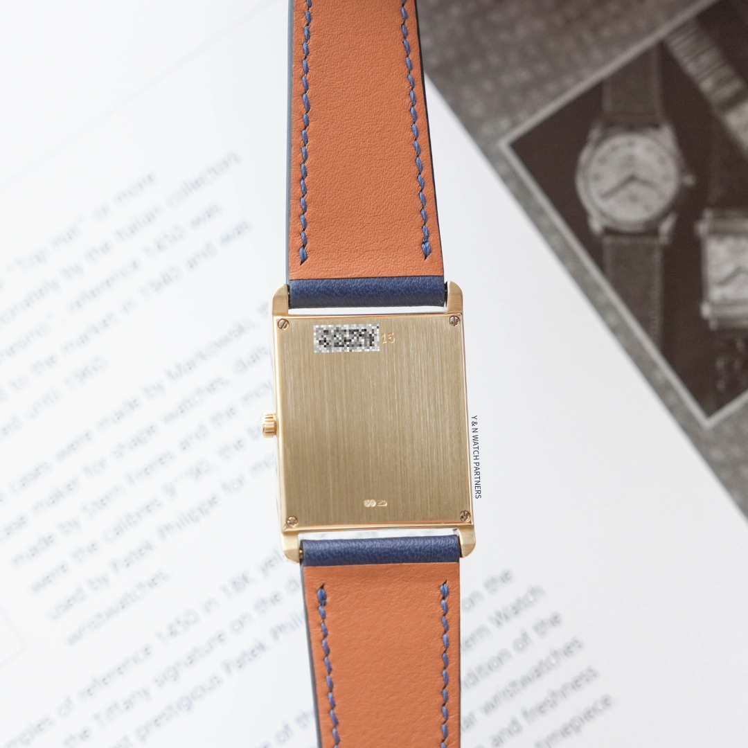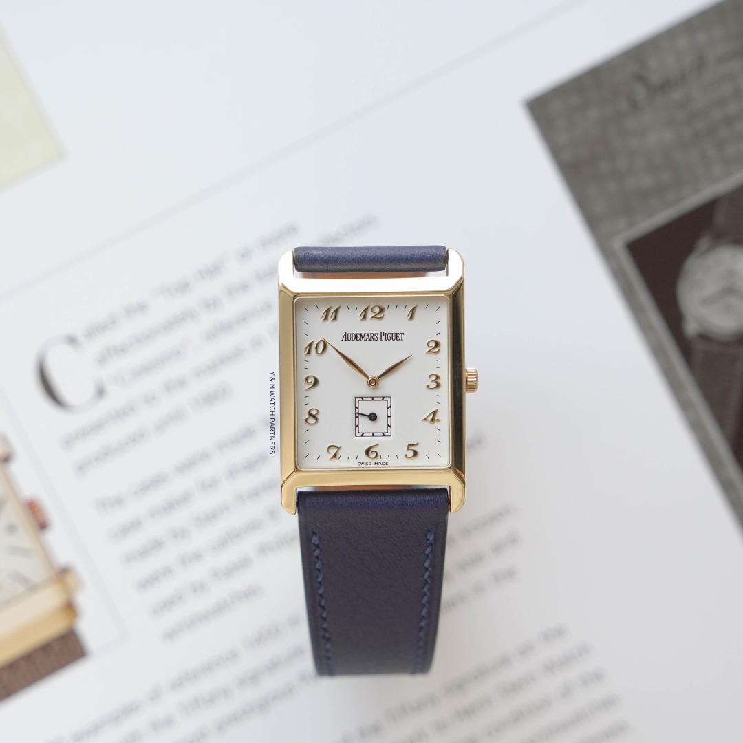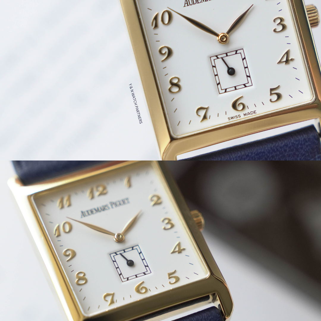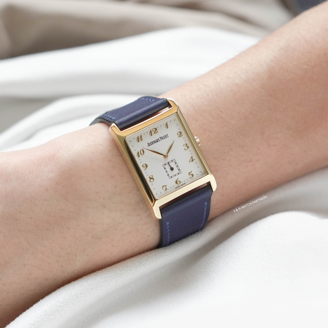 From its inception, the Edward Piguet collection has been defined by its refined rectangular silhouette and perfectly judged proportions. This Ref.14198, rendered in warm yellow gold, whispers a softer side of Audemars Piguet’s artistry. Measuring 25.5 × 36 mm, the case lines are crisp and elegant—neither too large nor too small—striking a graceful balance between formal sophistication and understated everyday wear. It flatters slender wrists while maintaining a quiet, confident presence on a gentleman’s arm.