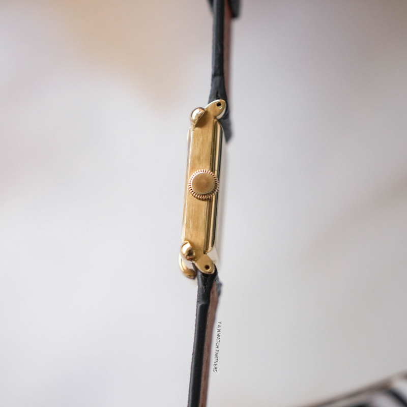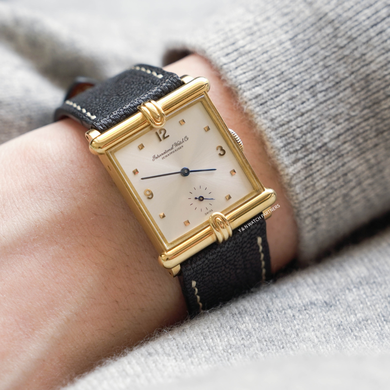 Vintage watches often serve as miniature vessels of their time. This rectangular gold IWC, in particular, reflects the social elegance of upper society in the 1940s. At the height of the cocktail-watch era, such watches were commonly seen at twilight gatherings of the elite. Beneath soft lights at dusk, gentlemen would raise their glasses in conversation, the gold case catching a fleeting glimmer with each gesture—no words required, refinement fully understood.